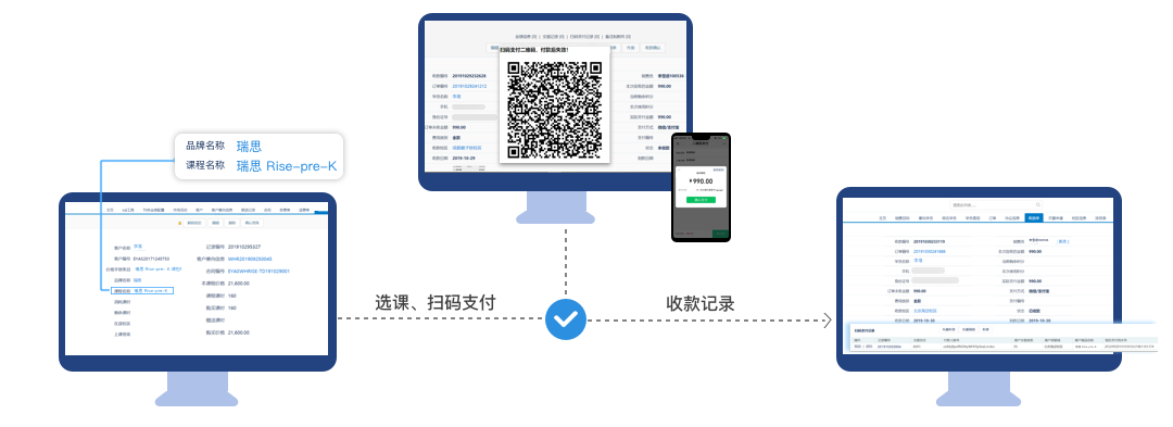 3.係統自動接收支付信息,並將支付信息自動關聯至學生及相關課程訂單。