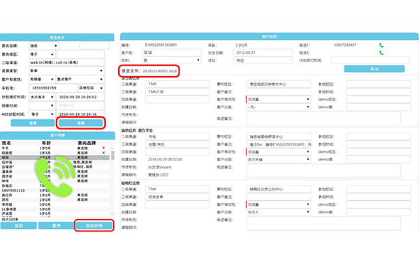 3.快速錄入跟進結果,及學生的意向課程;並生成錄音文件歸檔。