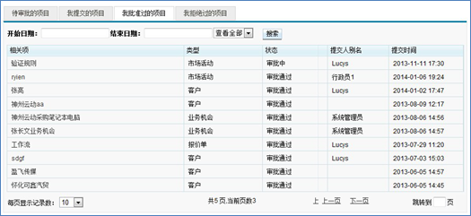 二、待批準項目,優化管理全部頁麵,添加查詢選項:我提交的項目、我批準過的項目、我拒絕過的項目: