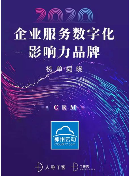 近日針對CRM領域數字化服務賽道,專注企業服務、移動信息化建設的T研究對外發布“2020年度用戶推薦CRM品牌”榜,通過2020一整年的持續數據追蹤以及業界專家反饋等入選指標,神州雲動CloudCC入選“2020企業服務數字化影響力榜單CRM類”TOP5,實至名歸!