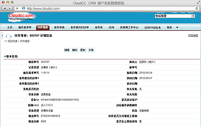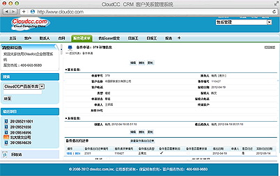 服(fu)務(wu)工(gong)作(zuo)台(tai)給(gei)坐(zuo)席(xi)人(ren)員(yuan)提(ti)供(gong)了(le)一(yi)個(ge)集(ji)成(cheng)的(de)工(gong)作(zuo)環(huan)境(jing),坐(zuo)席(xi)可(ke)以(yi)根(gen)據(ju)各(ge)種(zhong)條(tiao)件(jian)快(kuai)速(su)查(zha)詢(xun)客(ke)戶(hu)信(xin)息(xi),並(bing)能(neng)很(hen)清(qing)楚(chu)的(de)展(zhan)現(xian)與(yu)此(ci)客(ke)戶(hu)已(yi)經(jing)簽(qian)署(shu)過(guo)的(de)服(fu)務(wu)合(he)同(tong),合(he)同(tong)是(shi)否(fou)到(dao)期(qi),合(he)同(tong)的(de)設(she)備(bei)列(lie)表(biao),服(fu)務(wu)曆(li)史(shi)信(xin)息(xi),及(ji)常(chang)用(yong)聯(lian)係(xi)人(ren)等(deng)相(xiang)關(guan)信(xin)息(xi);並可以在此界麵直接創建請求單,提升坐席工作效率;