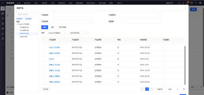 創建完報價後,添加產品。CloudCC 雲報價單讓這個過程變的簡單。你可點擊添加產品來顯示所有激活的產品,然後你可以選擇那些產品你希望添加到報價中: