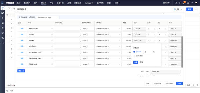將多種係列產品添加到同一個報價單中,並進行靈活的折扣設置: