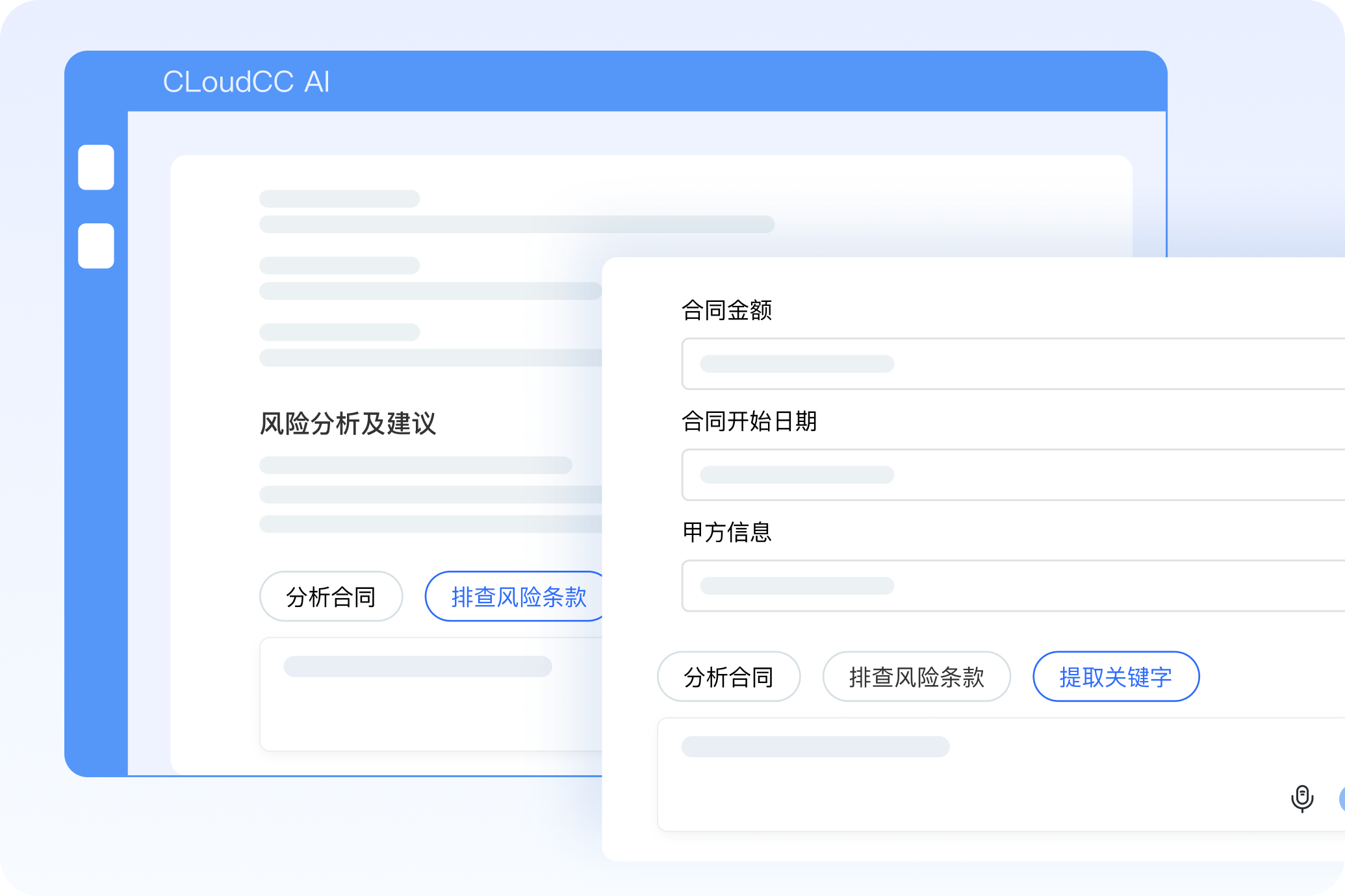 • 合同助手是“看合同+懂風險+能建檔”的三合一AI。會自動識別付款條款、交付時間、違約責任等潛在風險項, 並在確認無誤後,一鍵提取關鍵信息後生成CRM係統合同記錄,可以縮短合同錄入時間,提升準確度;