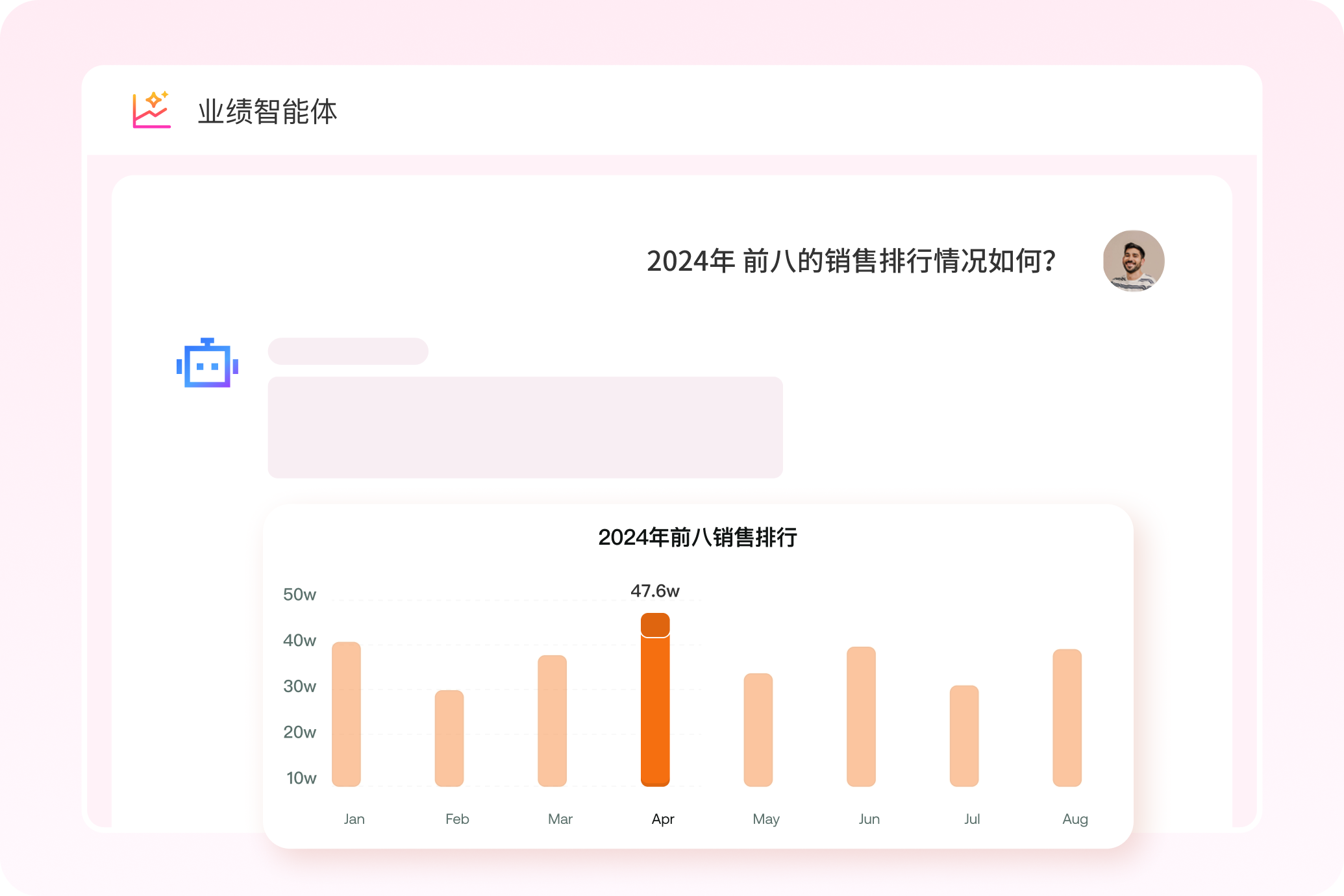 • 是“銷售管理的可視化AI大腦”。你隻需要通過自然語言提問,比如“2024年的銷售排行情況如何?”、“哪些行業增長最快? ”係統就會生成圖表,自動講出數據背後的故事。 不需要BI培訓、不需要建表,直接提問,AI就能給你圖表和洞察。