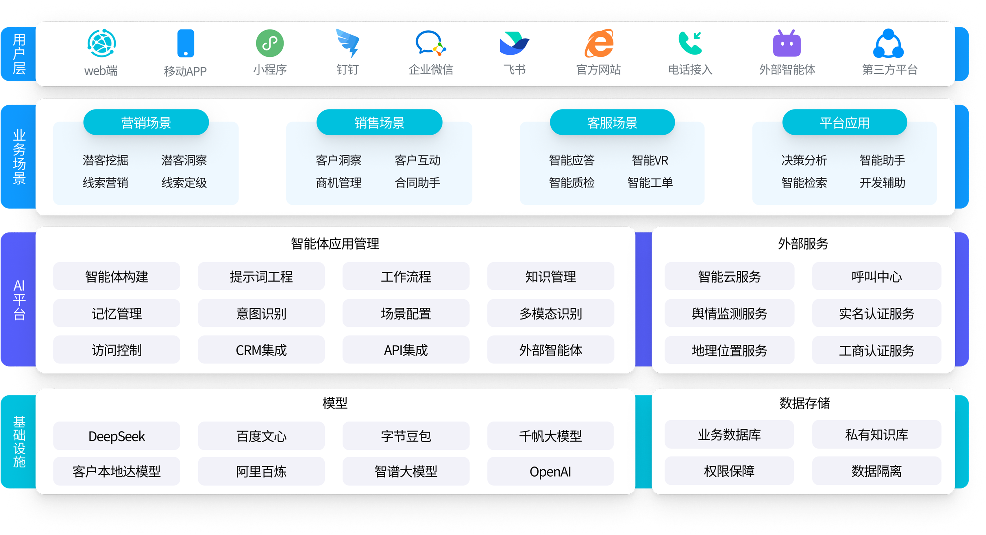 • 多場景、多模態接入客戶互動實景,準確識別客戶現場真實需求與談判態勢,動態推薦互動話題,提高贏單率