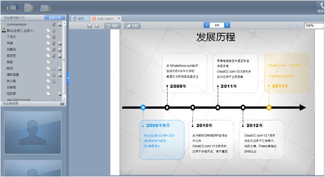 由神州雲動主辦的“第六期 CloudCC CRM 免費在線座談會” 8月2日在全時網絡會議(quanshihuiyi.com)舉辦,獲巨大成功,本次會議共邀請到全國30多家各行業的朋友參加。顧問的精彩演講演示與各位與會者的積極互動,把會議推向高潮。這裏特別感謝全時在線會議的支持。