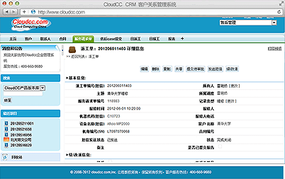 服(fu)務(wu)工(gong)作(zuo)台(tai)給(gei)坐(zuo)席(xi)人(ren)員(yuan)提(ti)供(gong)了(le)一(yi)個(ge)集(ji)成(cheng)的(de)工(gong)作(zuo)環(huan)境(jing),坐(zuo)席(xi)可(ke)以(yi)根(gen)據(ju)各(ge)種(zhong)條(tiao)件(jian)快(kuai)速(su)查(zha)詢(xun)客(ke)戶(hu)信(xin)息(xi),並(bing)能(neng)很(hen)清(qing)楚(chu)的(de)展(zhan)現(xian)與(yu)此(ci)客(ke)戶(hu)已(yi)經(jing)簽(qian)署(shu)過(guo)的(de)服(fu)務(wu)合(he)同(tong),合(he)同(tong)是(shi)否(fou)到(dao)期(qi),合(he)同(tong)的(de)設(she)備(bei)列(lie)表(biao),服(fu)務(wu)曆(li)史(shi)信(xin)息(xi),及(ji)常(chang)用(yong)聯(lian)係(xi)人(ren)等(deng)相(xiang)關(guan)信(xin)息(xi);並可以在此界麵直接創建請求單,提升坐席工作效率;